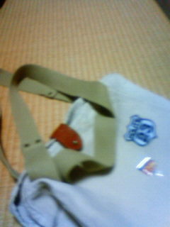 染みを隠すために百均のワッペン貼ってバッチ付けてみた。