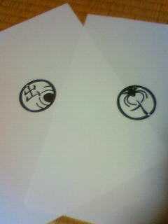 委託するお金が無いとかで、急遽消しゴム判子になった。それに伴いデザインの簡略化をせまられた。何とか完成。もう一時か。